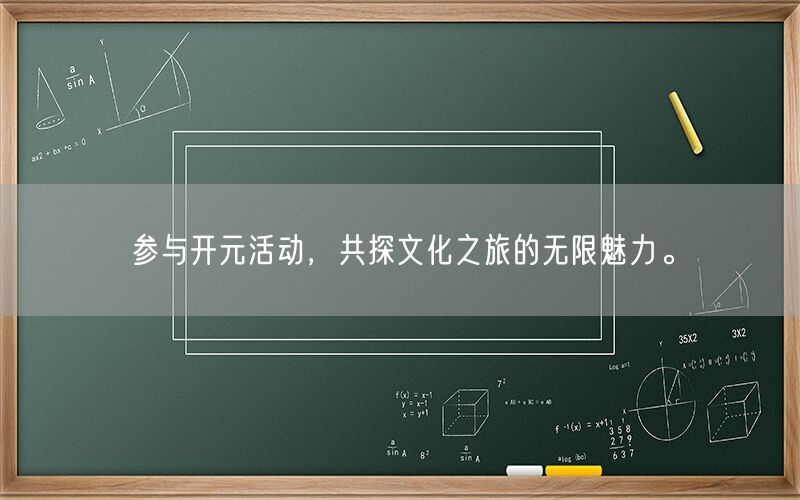 总之,参与开元活动,共探文化之旅的无限魅力,是一次难得的体验。让我们把握机会,共同感受文化的魅力,让心灵在文化的海洋中畅游。